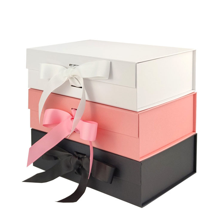 Folding rigid box with ribbon